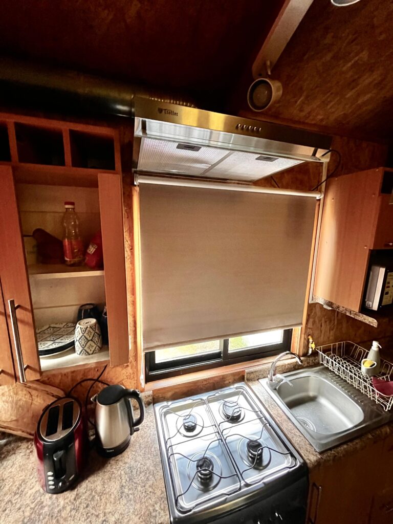 Nuestra cocina cuenta con todos los implementos necesarios para tu estadía, incluyendo, además, fogón, horno y parrilla al aire libre.